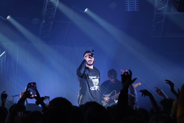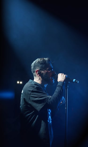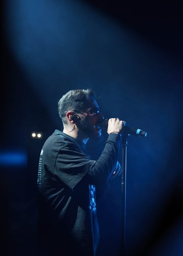 Dans une salle comble portée par une scénographie soignée et une performance intense, j’ai capté l’alchimie entre le rappeur et son public, entre lumière tamisée et tension poétique.